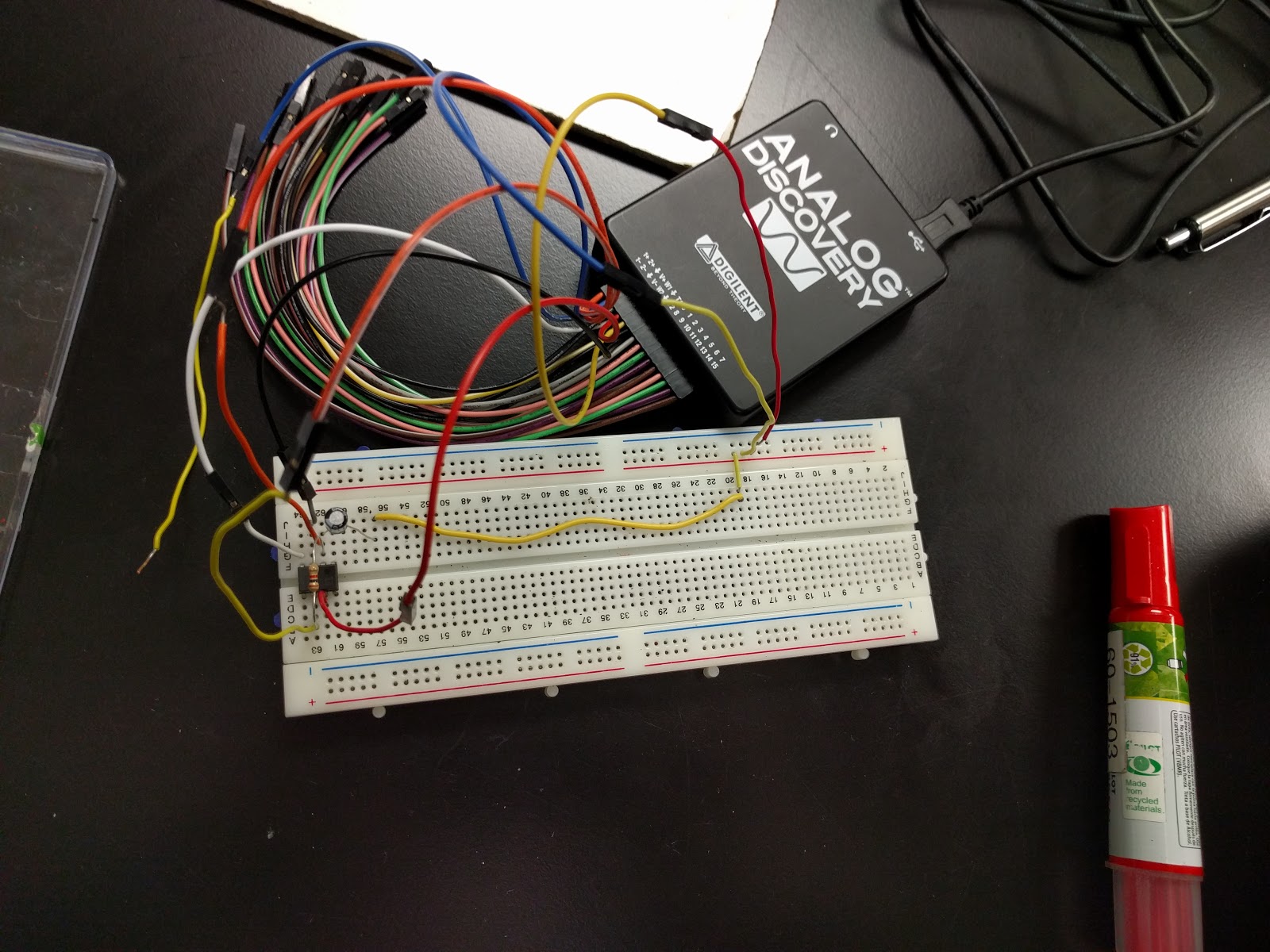 The apparatus of this experiment consisted of an OP27 op amp, a 1 uF capacitor, an analog discovery, a resistor, a breadboard, a laptop with Waveforms, wires, alligator clips and a DMM.